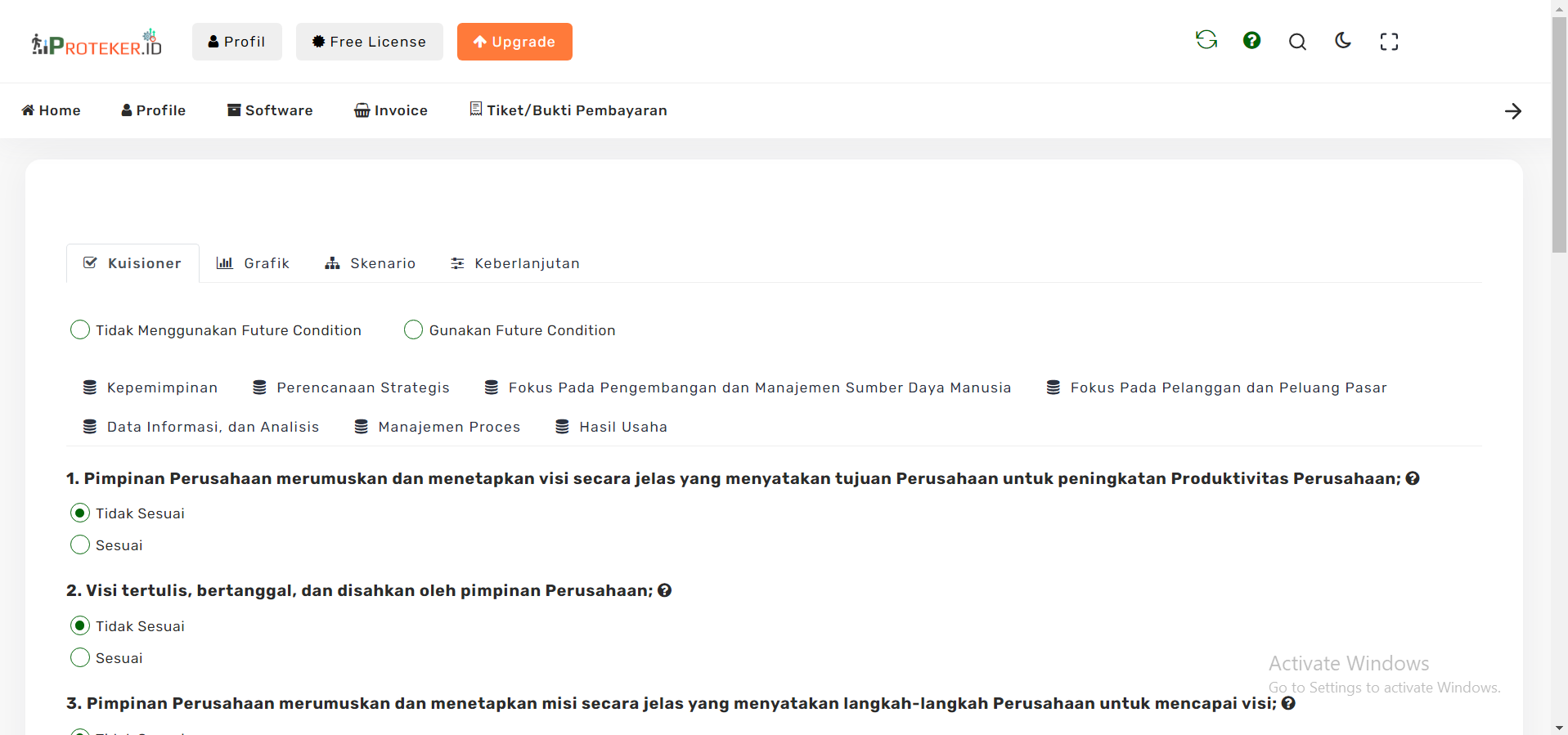 Isian kusioner sudah disesuaikan dengan Petunjuk Teknis Sistem Manajemen Peningkatan Produktifitas Kementerian Ketenagakerjaan Republik Indonesia